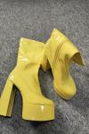 レビュー: レディース プラットフォーム チャンキーヒール ゴーゴーブーツ パテントブライトレザー ハイヒールブーツ
