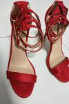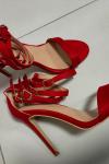 レビュー: ハイヒールサンダル 2026 レディースシューズ レッド オープントゥ アンクルストラップ サンダルシューズ