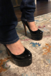 These are very sexy shoes. I love how they make my legs look longer. They are pretty comfortable to wear too. I generally wear a 6 1/2 to a 7, depending on the shoe, basically I’m on the smaller size of 7. And these 7s fit like a glove with no room to spare. They are very well made.