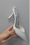 レビュー: 女性の結婚式の靴ラインストーンサテン先のとがったつま先スティレットヒールブライダルシューズ