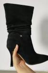 レビュー: 女性のスティレットヒール尖ったつま先の真珠のブーツ黒のブーツ
