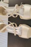 レビュー: ウェディングシューズサテンアイボリーオープントゥスティレットヒールアンクルストラップヒールブライダルシューズ