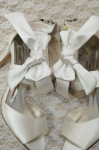 レビュー: サテンウェディングシューズインクブルーオープントウバウブライドメイドシューズハイヒールサンダル