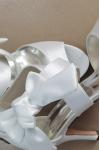 レビュー: サテンウェディングシューズインクブルーオープントウバウブライドメイドシューズハイヒールサンダル