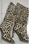 レビュー: レディース スエード ワイド カーフ ブーツ ヒョウ ハイヒール ニーハイ ブーツ