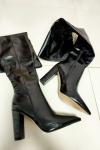 レビュー: サイハイ ブーツ ポインテッドトゥ チャンキーヒール ブーツ PU レザー レディース ブラック