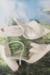女性の結婚式の靴刺繍メッシュのぞき見つま先チャンキーヒールブライダルシューズ