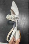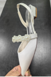 レビュー: 女性の結婚式の靴真珠サテン先のとがったつま先フラットブライダルシューズ