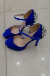 レビュー: ブルー ウェディングシューズ 2026 サテン ピープトウ ラインストーン バックルディテール ハイヒール ブライダルシューズ