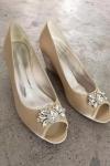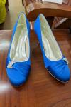 I got these in blue for my wedding shoes and they were a big hit! Lots of compliments on them throughout the day and the photographers.I was willing to trade the heel for some comfort for my wedding day. They are beautifully vintage and they're more sparkley than the pictures.