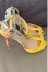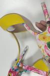 レビュー: レディースイエローハイヒールオープントゥスチレットヒールPUレザーシックカジュアルサマーTストラップヒール