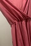 Tissu magnifique : soyeux mais mat, couleur vieux rose fidèle à la photo, tomber parfait à l'exception du buste qui a nécessité l'ajout d'un point (type bouton invisible) pour fermer le décolleté qui baille et ne ferme pas sinon.....