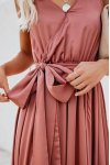 レビュー: ラップドレス ノースリーブ ブラッシュピンク Vネック ノットスリット プロム マキシドレス