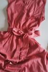 Tissu magnifique : soyeux mais mat, couleur vieux rose fidèle à la photo, tomber parfait à l'exception du buste qui a nécessité l'ajout d'un point (type bouton invisible) pour fermer le décolleté qui baille et ne ferme pas sinon.....